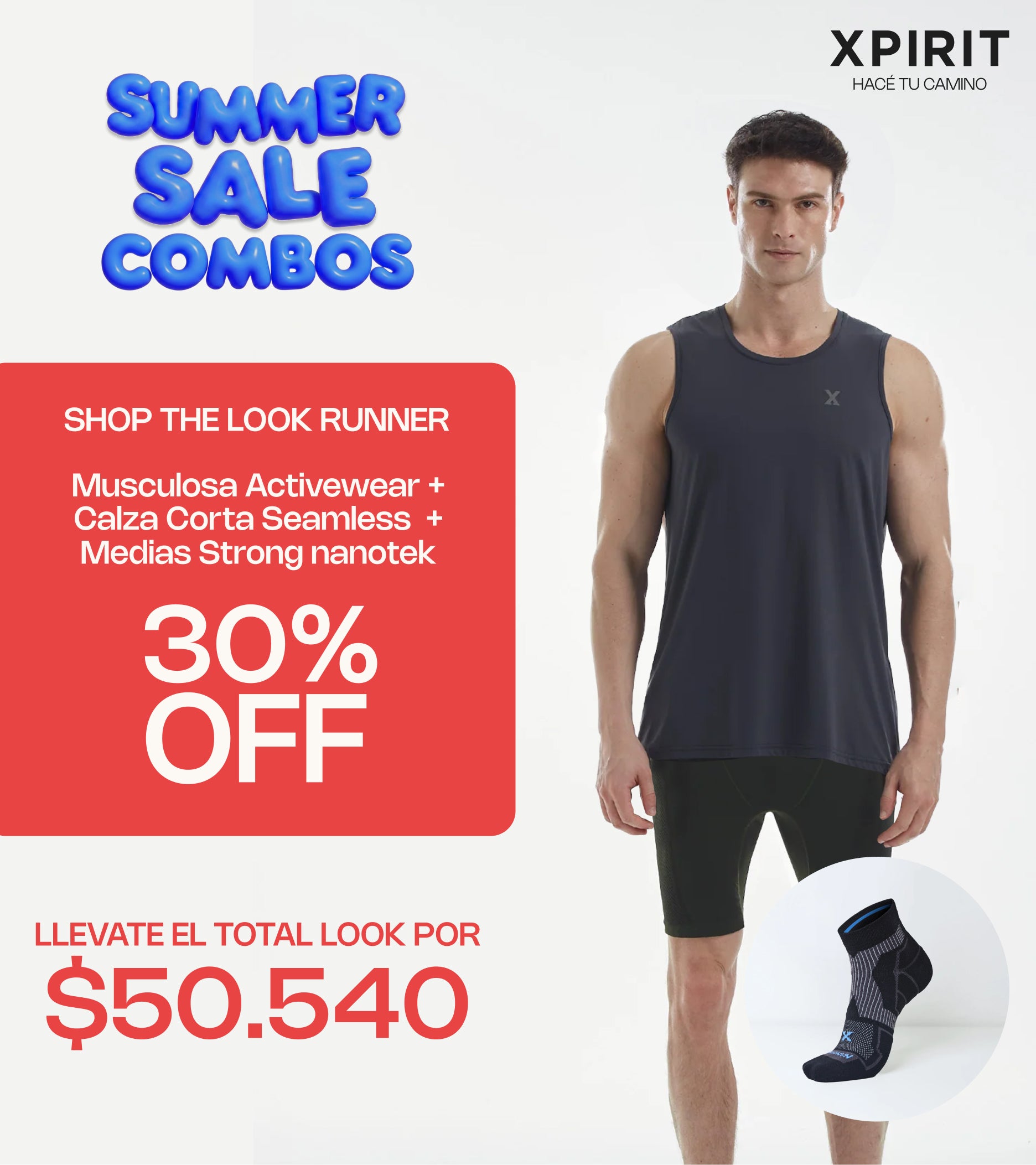 Medias Strong NANOTEK + Musculosa Activewear Hombre +Calza Corta Seamless Hombre